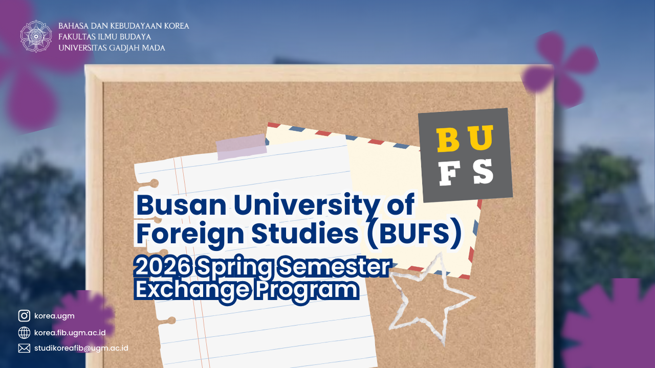 Melalui kerja sama dengan berbagai universitas di Korea Selatan, mahasiswa Program Studi Bahasa dan Kebudayaan Korea UGM berkesempatan mengikuti program pertukaran pelajar.