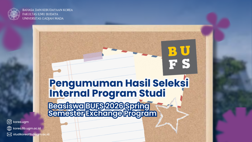 Program Studi Bahasa dan Kebudayaan Korea, Fakultas Ilmu Budaya UGM, dengan ini mengumumkan hasil seleksi internal calon penerima beasiswa BUFS 2026 Spring Semester Exchange Program.