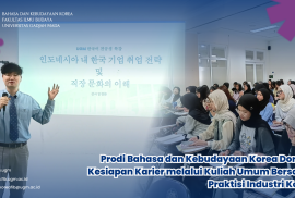 Yogyakarta, 24 Februari 2026 — Program Studi Bahasa dan Kebudayaan Korea, Fakultas Ilmu Budaya Universitas Gadjah Mada, kembali menunjukkan komitmennya dalam mendukung peningkatan kualitas pendidikan melalui kegiatan Penyerahan Beasiswa kepada mahasiswa berprestasi. Adapun beasiswa yang diberikan pada kali ini yaitu beasiswa KAGAMA Korea periode semester genap TA 2025/2026, beasiswa KOCHAM, beasiswa KOMITRANDO. Kegiatan ini diselenggarakan di Gedung Soegondo Fakultas Ilmu Budaya, ruang 521+522, pada pukul 13.00–13.30 WIB, dan dihadiri oleh perwakilan KOMITRANDO, seluruh penerima beasiswa, serta mahasiswa yang mengikuti mata Bahasa Korea Akademik.