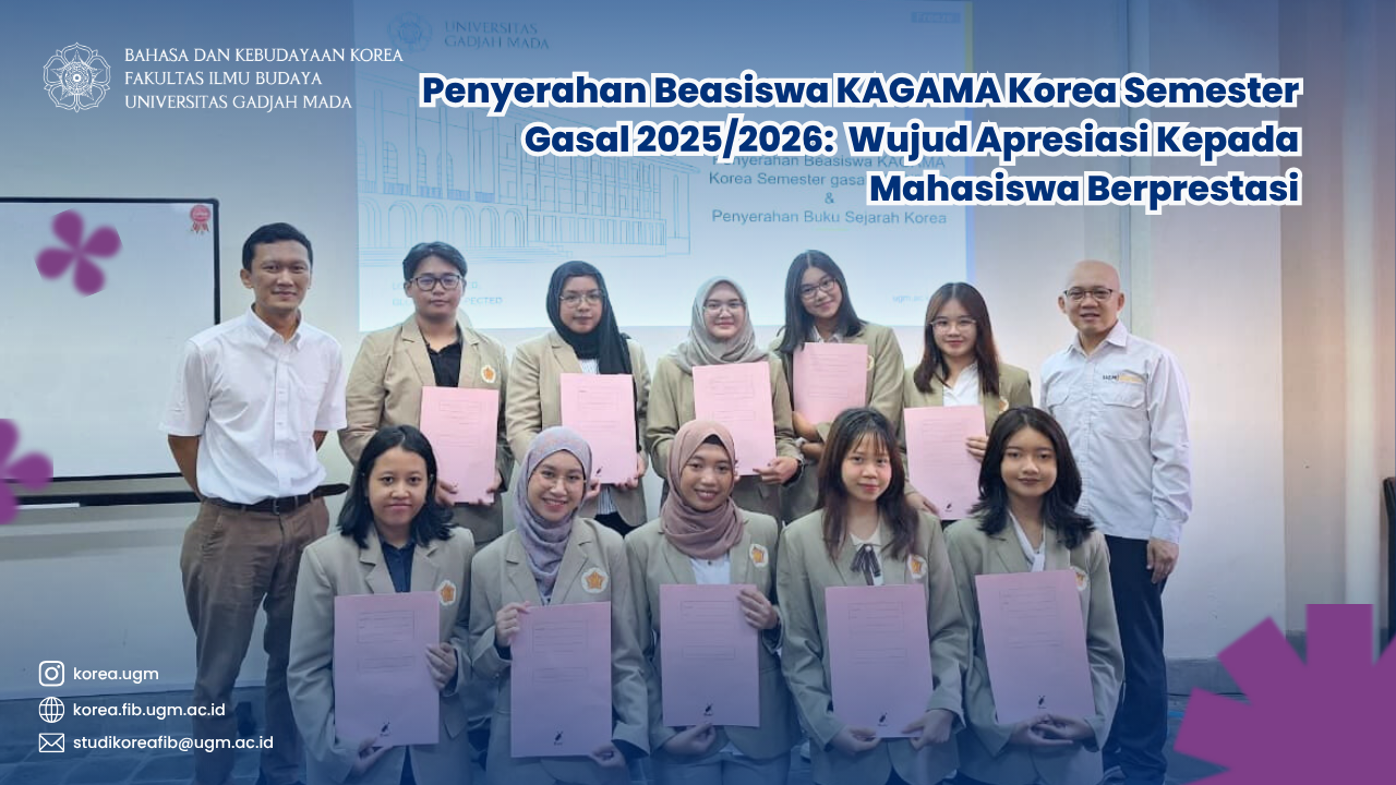 Yogyakarta, 13 Oktober 2025 — Program Studi Bahasa dan Kebudayaan Korea, Fakultas Ilmu Budaya Universitas Gadjah Mada, menyelenggarakan kegiatan pembagian buku Sejarah Korea kepada mahasiswa yang mengikuti mata kuliah Cross-Cultural Understanding Between Korea and Indonesia.
