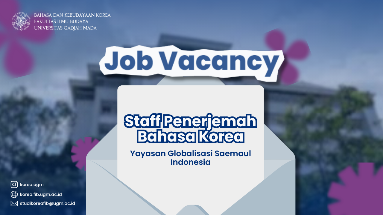 📢 LOWONGAN KERJA – YAYASAN GLOBALISASI SAEMAUL INDONESIA Yayasan Globalisasi Saemaul Indonesia membuka kesempatan bagi Anda yang memiliki kemampuan Bahasa Korea untuk bergabung sebagai: Staff Penerjemah Bahasa Korea 📌 Persyaratan: * Minimal TOPIK Level 4