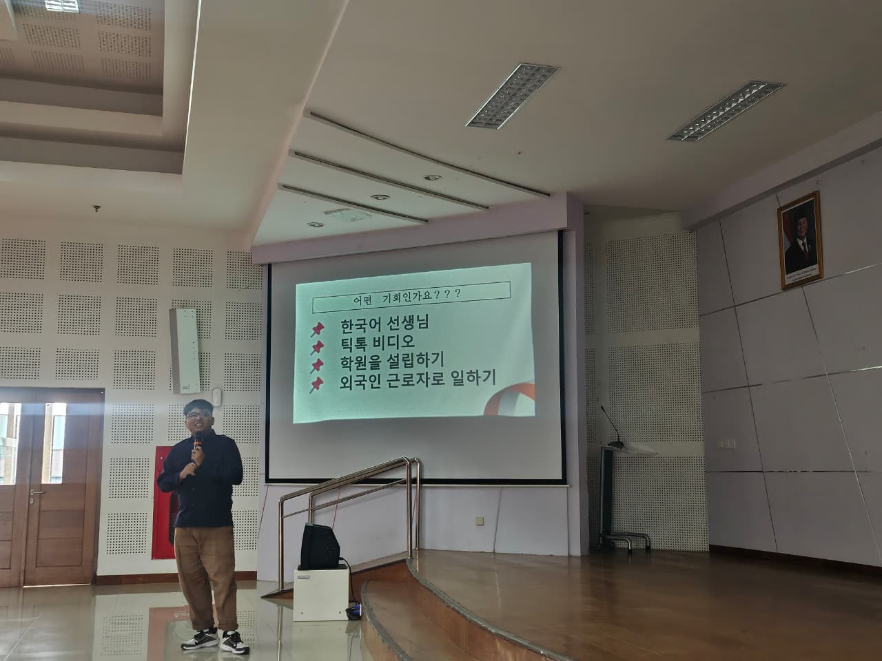 Through this guest lecture, students are expected not only to understand the importance of mastering Korean academically but also to gain a clearer picture of concrete career opportunities after graduation, both within Indonesia and through official employment programs in South Korea.