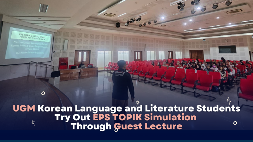 Yogyakarta, September 18, 2025 — The Korean Language and Culture Study Program, Faculty of Cultural Sciences at Universitas Gadjah Mada, held a guest lecture for the course Comprehensive Korean I under the theme “흥미로운 세상: EPS TOPIK and Korean Language for Migrant Workers.” The event took place at the Soegondo Building Auditorium and featured program alumnus Adam Ferdian Bagastama, S.Hum., as the main speaker.
