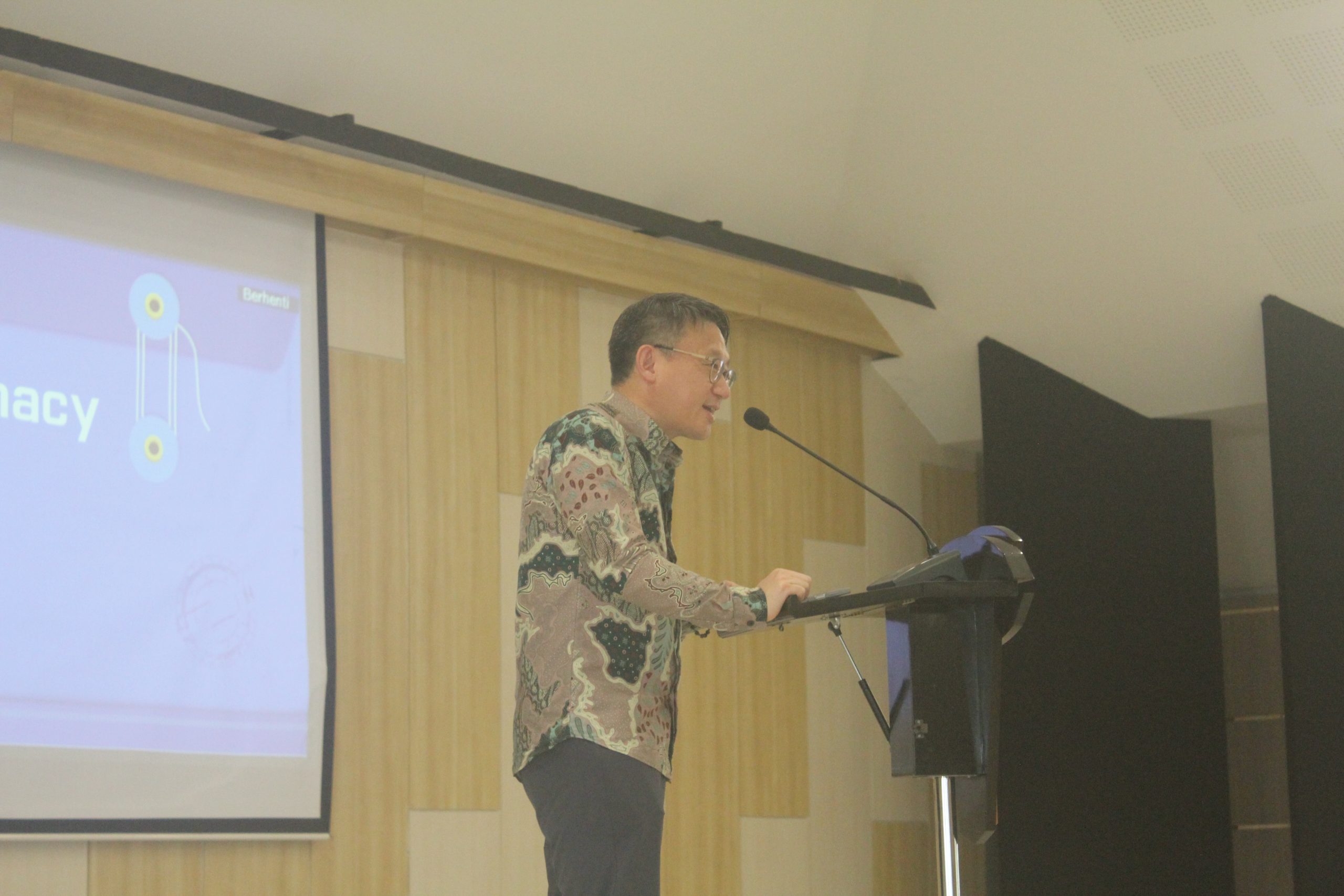 The event began with welcoming remarks from the Head of the Study Program, followed by an introduction of the speaker by a representative from the Embassy of the Republic of Korea. Mr. Park Soo-deok then opened his presentation by outlining the long-standing relationship between Korea and Indonesia across various sectors. He highlighted education as one of the key areas of cooperation, including through the Korean Government Scholarship (KGS) program, which has many Indonesian awardees.