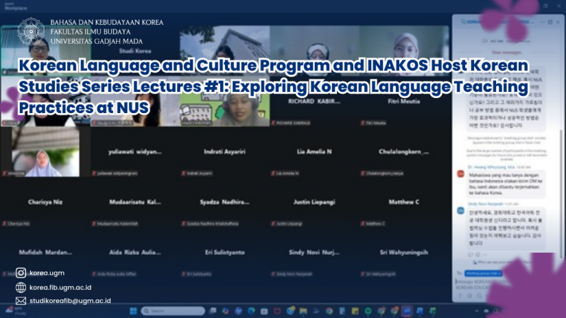 Yogyakarta, 14 November 2025 — INAKOS, in collaboration with the Korean Language and Culture Undergraduate Program at Universitas Gadjah Mada and supported by funding from the Korea Foundation, held the first lecture in the Korean Studies Series Lectures. The session took place online on 14 November 2025 under the title “Korean Language Education in Singapore.” The invited speaker was Dr. Ji Seowon from the Centre for Language Studies, National University of Singapore.