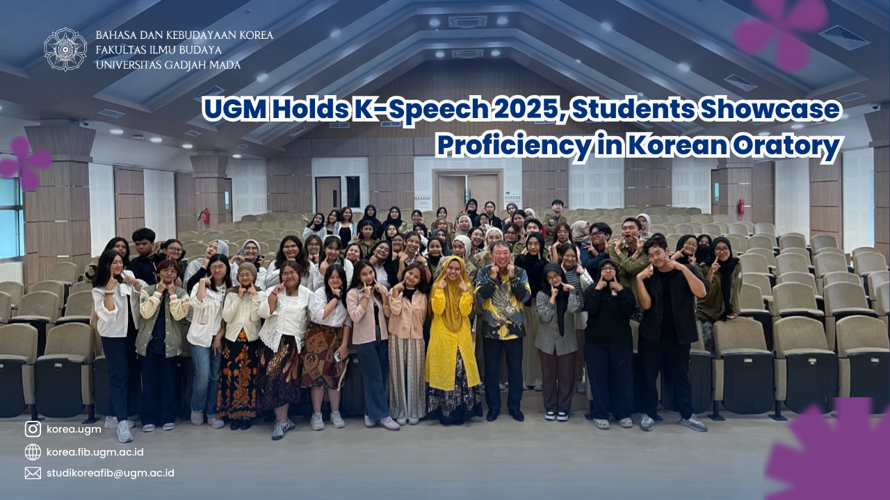 Yogyakarta, 19 December 2025 — The Korean Language and Culture Program of Universitas Gadjah Mada held the K-Speech UGM 2025 Oratory Competition as a Final Semester Project for the Speaking and Listening III course, taught