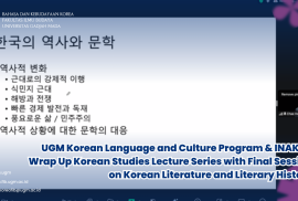 Yogyakarta, 28 November 2025 — INAKOS, in collaboration with the Korean Language and Culture Program at Universitas Gadjah Mada, held the third online public lecture on Friday, 28 November 2025.